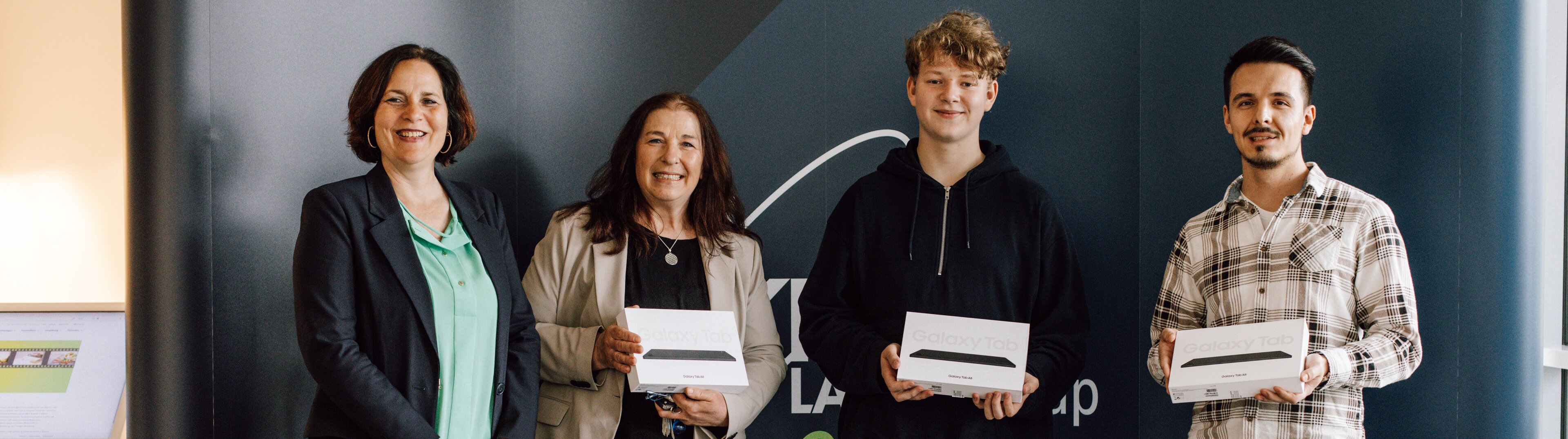 Die geschäftsführende Gesellschafterin der MEKRA Lang Gruppe, Susanne Lang, würdigte die erfolgreiche Teilnahme am Quiz und freute sich mit den Gewinnern über die leistungsstarken Tablets im Wert von über 180 Euro, die diese mit nach Hause nehmen durften.