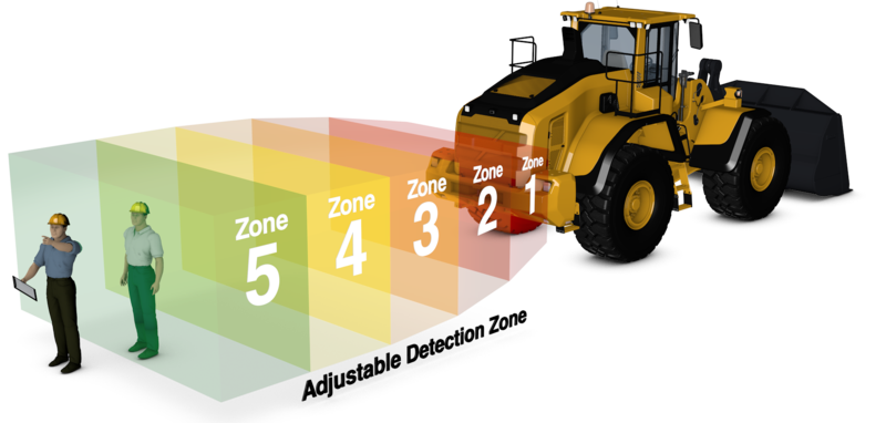 Radarsysteme können, zusätzlich zu Spiegel- und Kameralösungen, weitere Bereiche um die Maschine überwachen. Durch optische und/oder akustische Signale des Anzeigedisplays wird der Maschinenführkraft über Objekte oder Personen im Fahrweg oder der Gefahrenzonen gewarnt. Durch die Kombination mit einem Kamerasystem erfasst der Fahrer die Situation mit nur einem Blick auf den Monitor.
